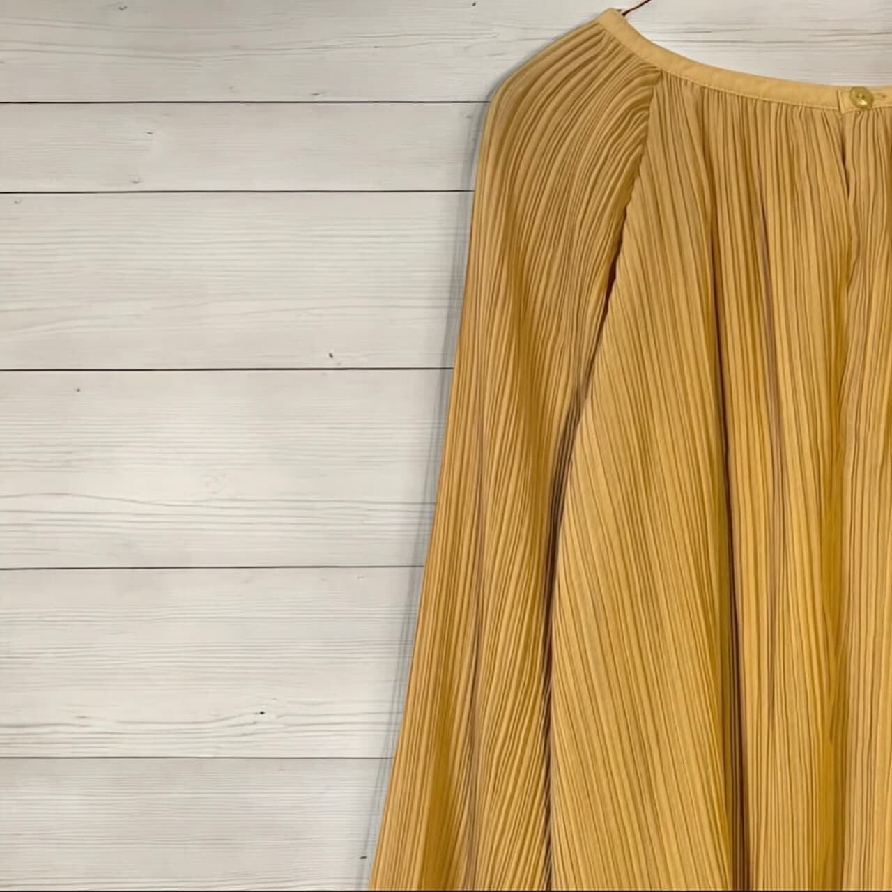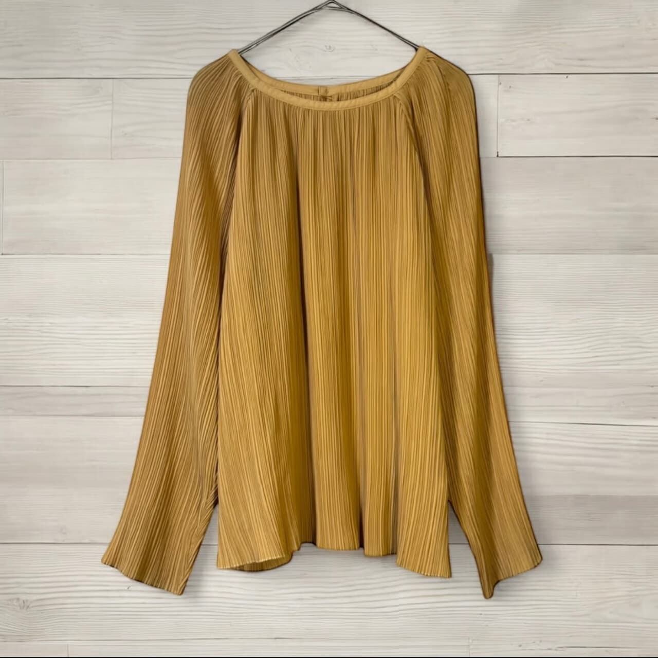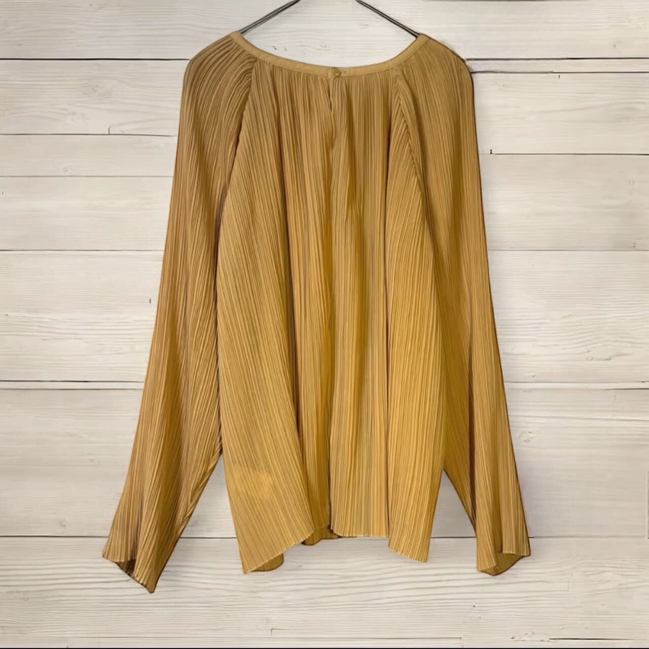 This blouse has a loose-fitting silhouette with delicate pleats. The wide round neck and voluminous sleeves combine to create both a relaxed and elegant look. It is the perfect piece to coordinate with both casual and elegant styles.