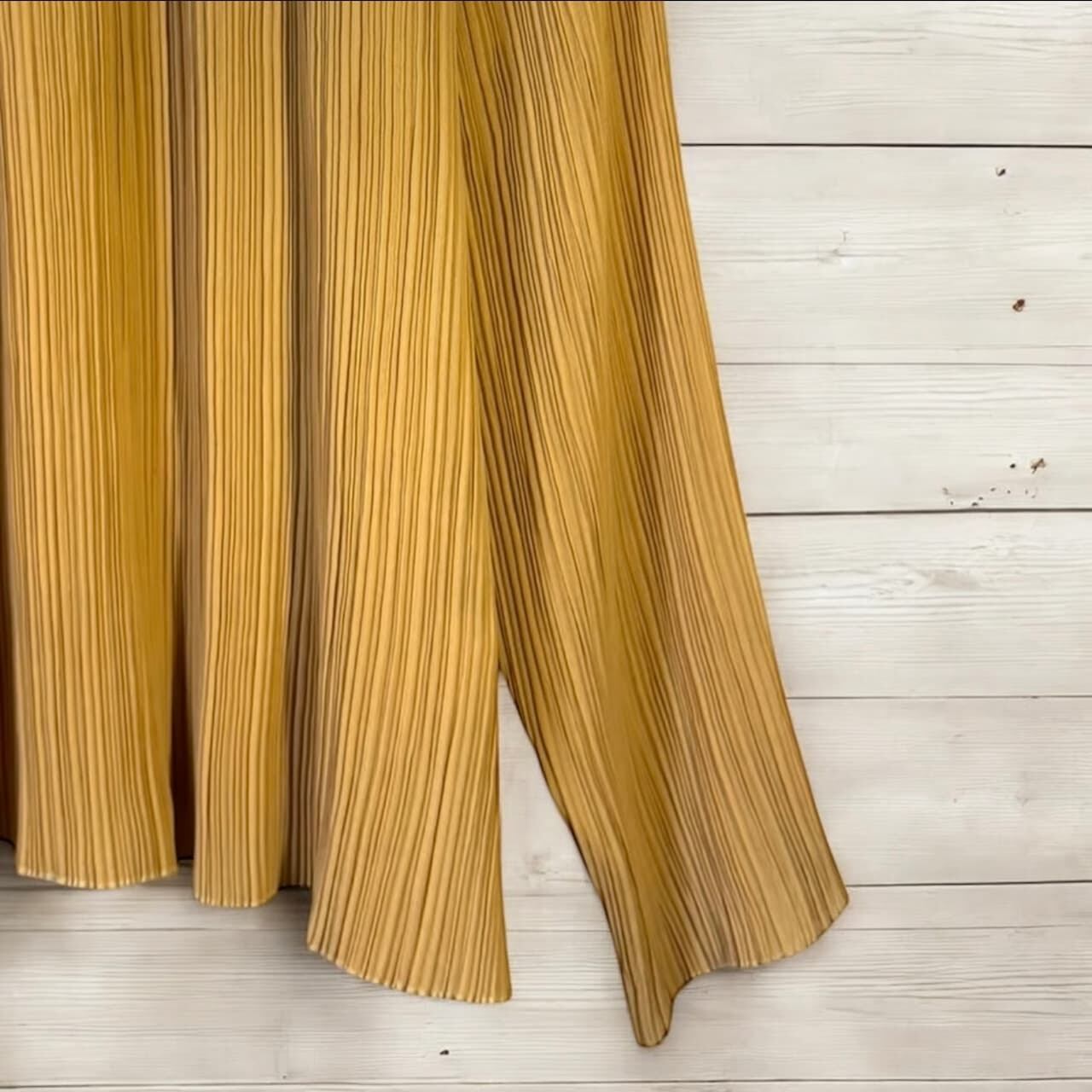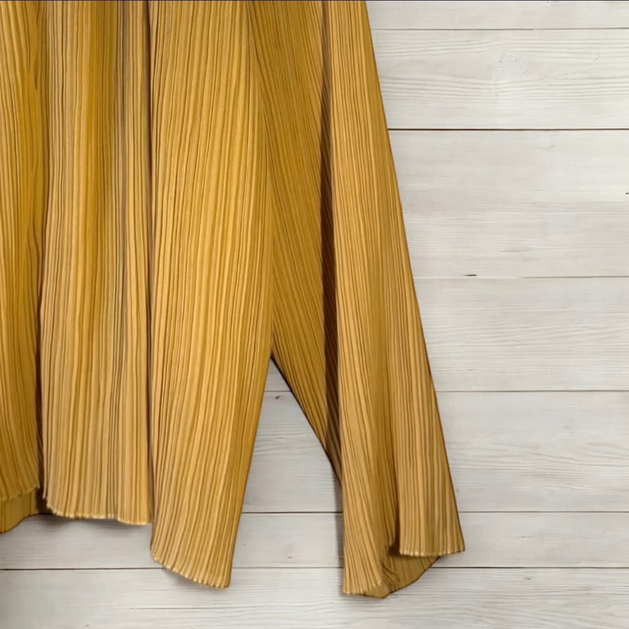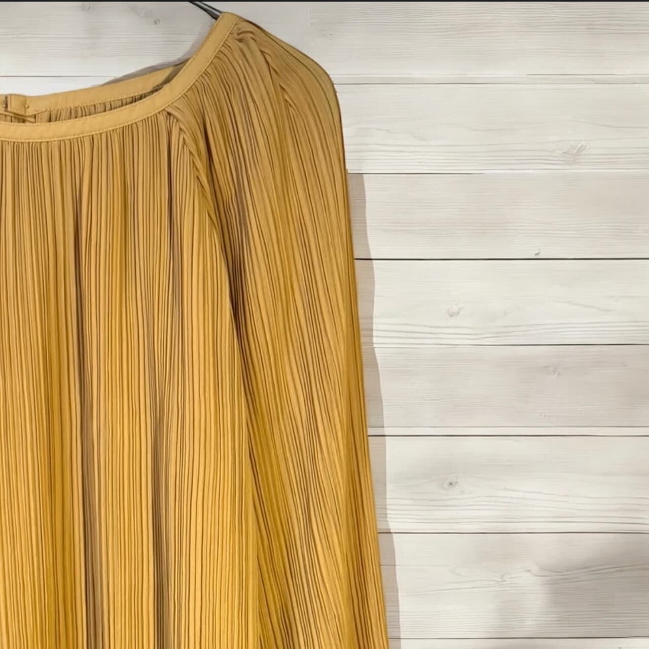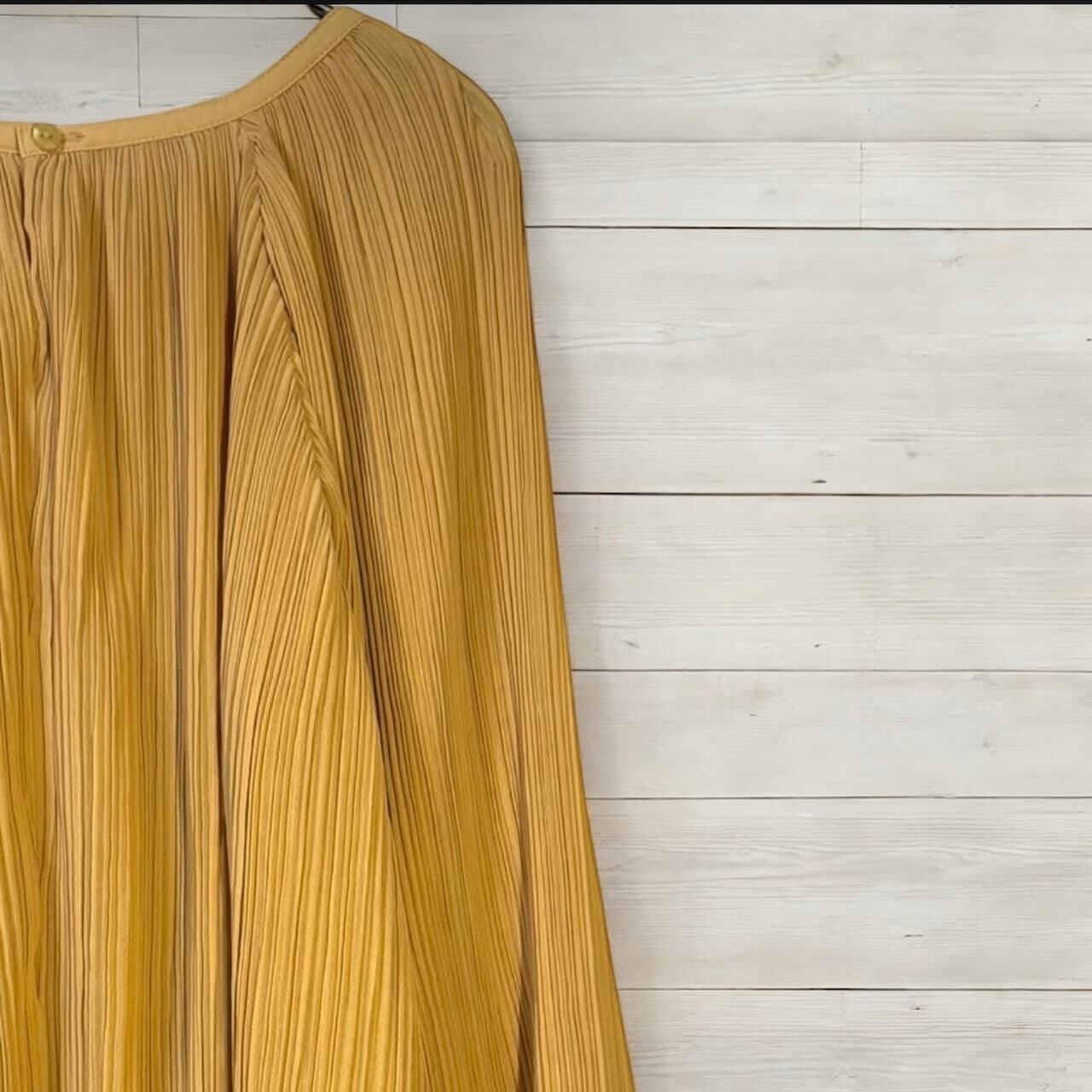This blouse has a loose-fitting silhouette with delicate pleats. The wide round neck and voluminous sleeves combine to create both a relaxed and elegant look. It is the perfect piece to coordinate with both casual and elegant styles.