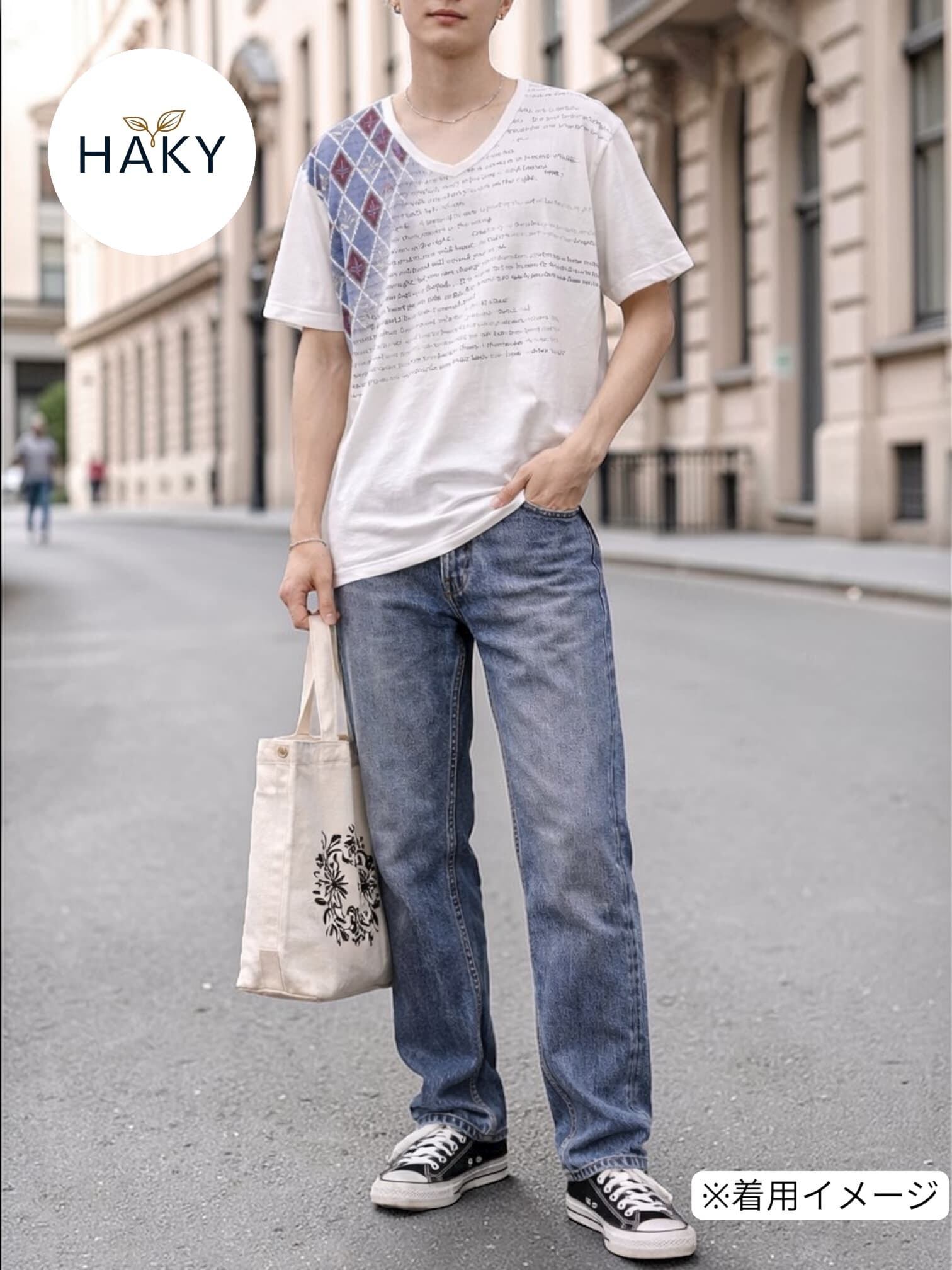Featuring an argyle pattern and text print, this V-neck tee adds character to your casual outfits.