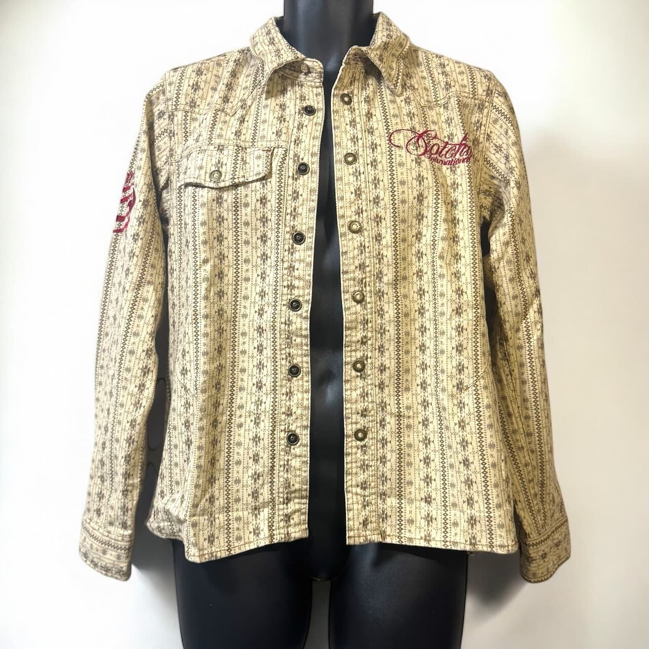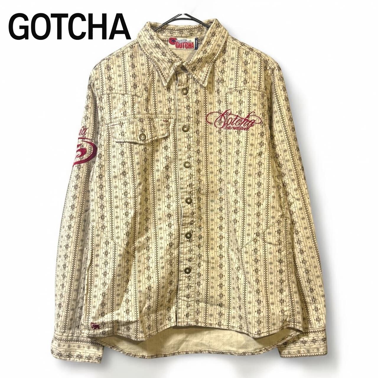 The vintage-inspired “GOTCHA” long-sleeved shirt features a unique all-over pattern design and embroidered logo. The particular details with a western taste add accent to your casual style.
